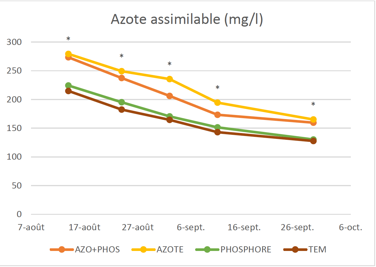 « Généralement, quand on a de l’azote dans le moûts, c’est que l’on a favorisé le métabolisme primaire de la plante, donc plutôt la croissance et la vigueur. Quand on a des polyphénols dans un moût, on a au contraire plutôt favorisé le métabolisme secondaire, c’est-à-dire limiter la vigueur et contraint la plante pour améliorer la charge en polyphénols. Avec l’association YaraVitaTM Safe N 300 et YaraVitaTM Séniphos à véraison, on a un taux élevé d’azote dans le moût, ce qui est extrêmement favorable à la production de composés aromatiques par vinification, tout en conservant le niveau de polyphénols requis pour donner au vin la structure en bouche voulue. Les effets n’ont été observés que sur Cabernet-sauvignon, mais association N+P à véraison devrait permettre à un vin de s’affirmer comme un vin rouge fruité et léger. Pour confirmer cette hypothèse, il faut désormais réaliser un essai qui mette en œuvre des vinifications », conclut Thierry Dufourcq de l’IFV.