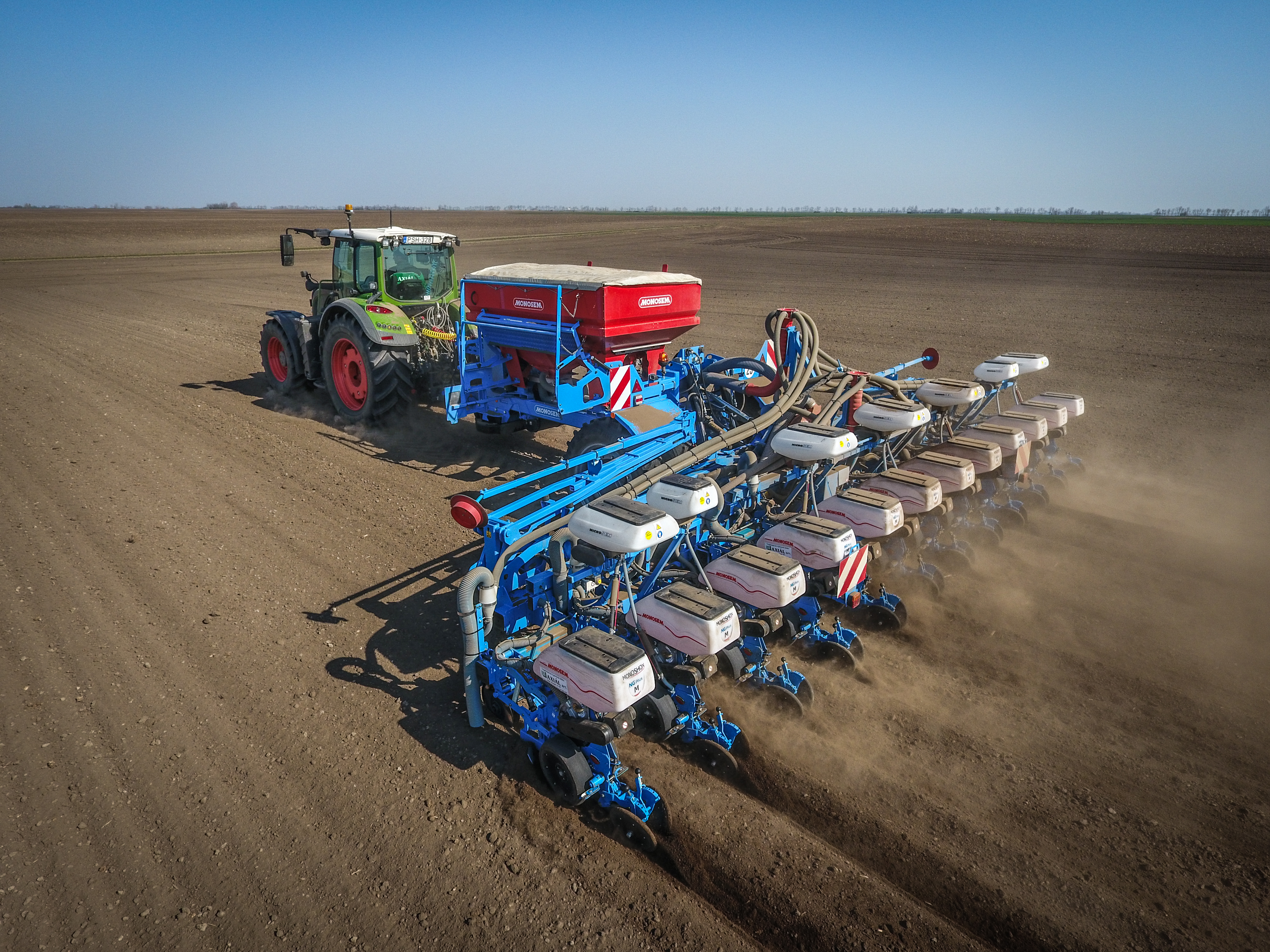 Pour bien positionner votre engrais starter, il vaut mieux disposer d’un circuit fertiliseur sur votre semoir à maïs. L’engrais est à positionner à 5 cm de la ligne de semis et à 5 cm de profondeur. Pour assurer le bon positionnement de l’engrais par rapport à la ligne de semis, il est conseillé de contrôler au moins une fois par campagne la distance des socs fertiliseurs à la ligne de semis. En effet, si la distance avec la ligne de semis est trop faible (moins de 2-3 cm), l’engrais peut devenir toxique, en particulier lorsque le granulé entre en contact avec la jeune plantule. Inversement, si cette distance est trop élevée, le jeune pied de maïs ne pourra pas profiter des éléments minéraux apportés : aucun effet « starter » n’aura lieu.
