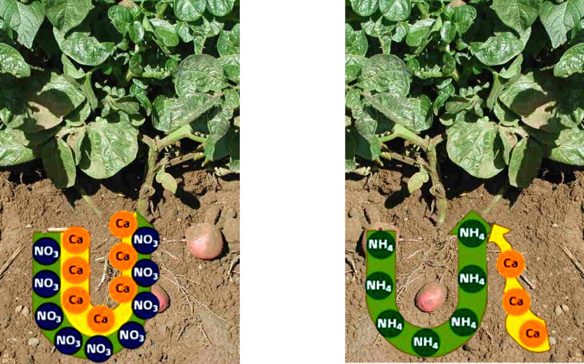Au contraire, l’entrée du calcium dans les tubercules se fait à travers leur peau et à partir des racines portées par les stolons. De nombreux essais ont démontré que l’apport de calcium à proximité des stolons et des tubercules sous une forme immédiatement disponible reste le moyen le plus sûr d’augmenter le niveau de calcium dans les tubercules.