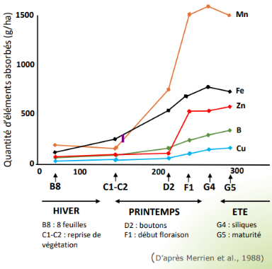 Figure 2 : dynamique d’absorption des oligo-éléments. Source : Terres Inovia, 2021