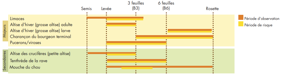 Figure 1 : période de surveillance des bioagresseurs du colza – Terres Inovia, 2022
