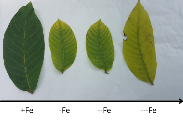 Etant donné la fréquence des déficiences en fer, il est nécessaire de les identifier le plus tôt possible et de procéder aux applications en fer nécessaires. Les symptômes liés à un manque de fer ne sont pas toujours visibles. Lorsqu’ils apparaissent, sous forme de jaunissement, la photosynthèse du végétal est impactée et des pertes de rendement et de qualité apparaissent.