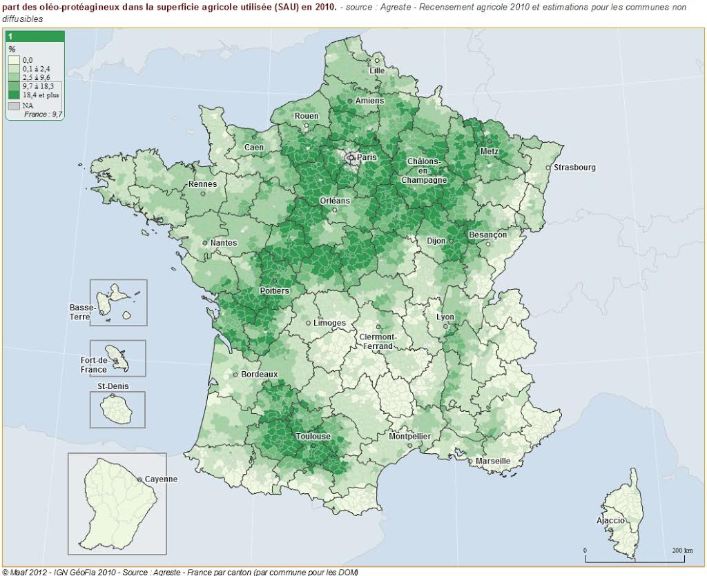 La culture du colza est associée aux systèmes de grandes cultures et s’adapte à des contextes pédoclimatiques très variés. On la retrouve ainsi de façon large sur tout le territoire national, essentiellement au nord d’une ligne La Rochelle-Strasbourg mais avec une zone de culture en région Toulousaine.